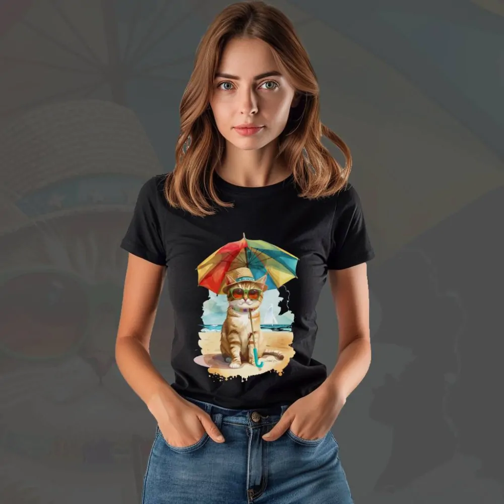 Dámské tričko - Beach Cat | ILUS.cz | Barevný svět na plátnech | Trička, obrazy a plakáty