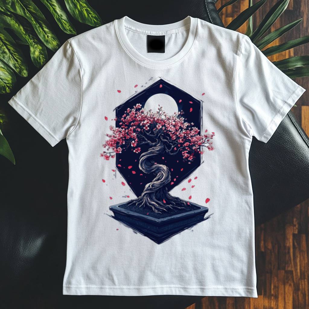 Pod rudým světlem měsíce se ticho zahrady mění v magický okamžik 🌕. Jemně tvarovaný bonsai odráží sílu času i klid mysli, zatímco jeho větve kreslí příběh trpělivosti. Kontrast temné oblohy a červeného měsíce vytváří hypnotický vizuál, který působí skoro jako živý. Motiv vychází z japonské estetiky wabi-sabi a kvalitní potisk drží každý detail v dokonalé harmonii. Tohle japonské tričko jako tričko s japonským motivem posouvá streetwear i anime tričko na novou úroveň 🌑.
