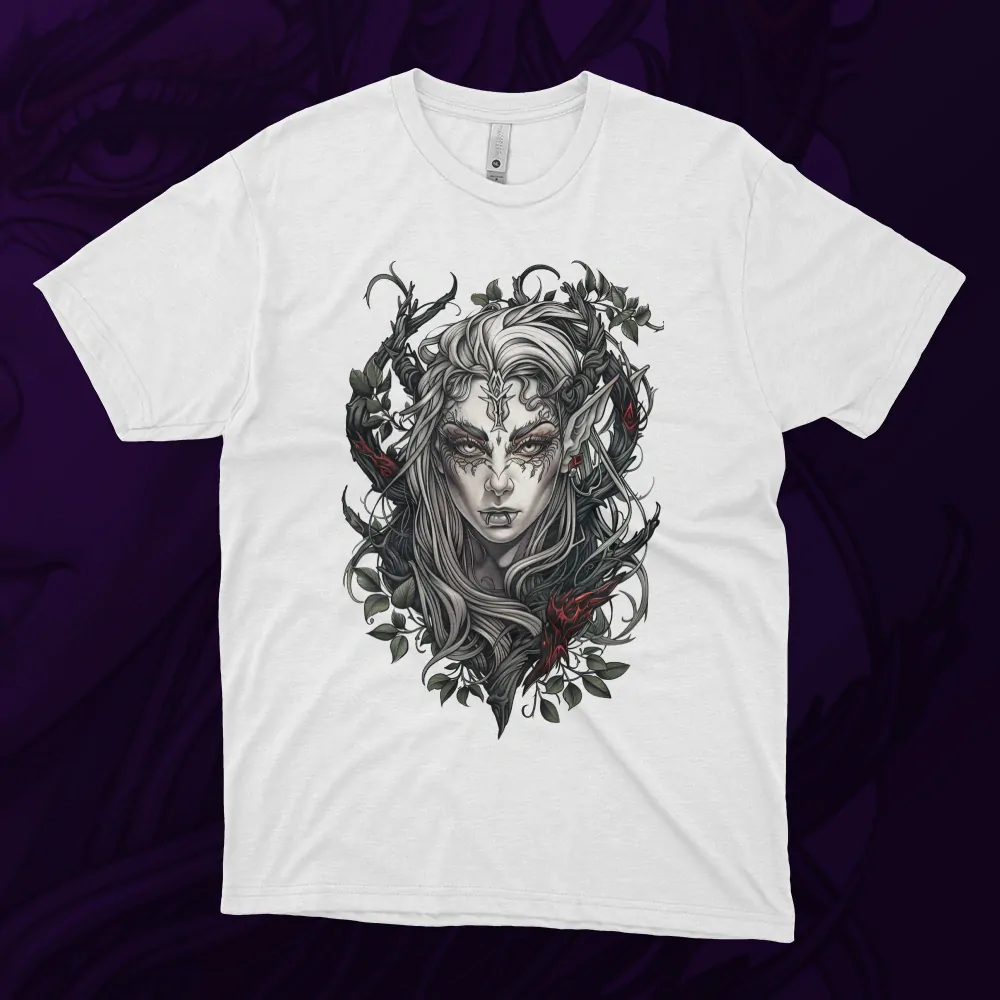 V temných lesích, kde stromy šeptají tajemství a stíny se mění v živou bytost, žije elfka plná síly a odhodlání. Tričko Dark Female Elf vás zavede do světa, kde se prolínají půvab a hrůza, síla a zranitelnost. Buďte připraveni na putování do neznáma, kde se setkáte s vašimi vlastními démony i světlem.