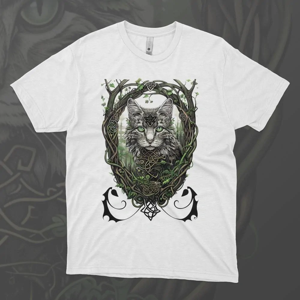 Představujeme vám tričko s názvem Druidská kočka, které zachycuje mystickou kočku obklopenou spletitými kořeny starodávných stromů. Tato kočka, se záhadným a moudrým pohledem, sedí mezi kořeny, které připomínají keltské vzory, a vyzařuje magickou atmosféru dávných druidských obřadů. Představte si, jak Druidská kočka putuje lesem plným prastarých tajemství, skrývá se mezi kořeny a naslouchá šepotu starých stromů. Toto triko je ideální pro všechny milovníky koček a keltské mystiky, kteří chtějí do svého šatníku přidat kousek plný historie a kouzla. Přidejte si tento jedinečný kousek do svého šatníku a nechte se unést atmosférou keltských lesů s touto magickou kočičí průvodkyní.