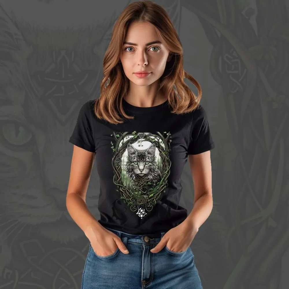 Dámské tričko - Druid Cat | ILUS.cz | Barevný svět na plátnech | Trička, obrazy a plakáty