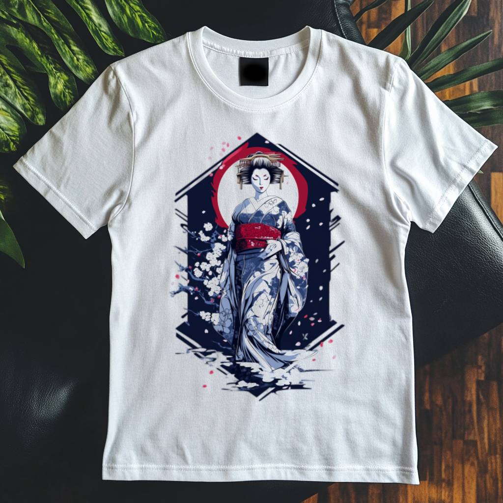 Z mlžného oparu se pomalu rodí postava geishy, jako by byla snem 🌫️. Její přítomnost je tichá, ale nezapomenutelná, zahalená v tajemství. Jemné přechody a stíny vytváří hloubku, která vtahuje do jiného světa. Inspirace japonskou mystikou je zachycena v kvalitním potisku plném detailů. Tohle japonské tričko jako tričko s japonským motivem dodává streetwearu i anime tričku éterickou atmosféru 👘.