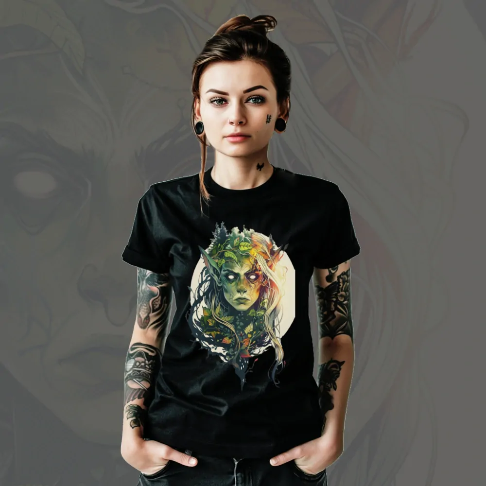 Ve stínu bujného lesa se pohybuje Green Female Elf, jejíž vlasy splývají jako zelené viněty a oči září jasněji než listí stromů. Toto tričko je pozvánkou do světa, kde se setkává krása přírody a síla elfí magie, kde Green Female Elf chrání své zelené území s elegancí a odhodláním. Oblečte se do této zbroje a připravte se na dobrodružství v lese, kde se skrývají nekonečné tajemství a přírodní kouzla.