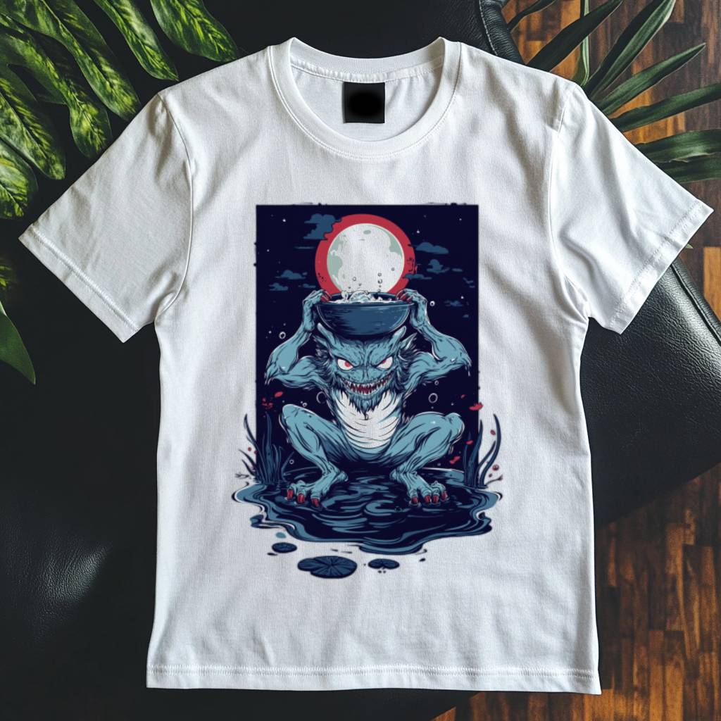 Z hladiny vody se vynořuje kappa s hravým, ale zlověstným úsměvem 💧. Jeho pohyb narušuje klid a přináší do scény napětí i zvědavost. Vodní efekty a dynamika dávají motivu živost a energii. Japonský folklór je zde zachycen v detailním potisku s dlouhou životností. Tohle japonské tričko jako tričko s japonským motivem oživuje streetwear i anime tričko nečekaným způsobem 🌊.