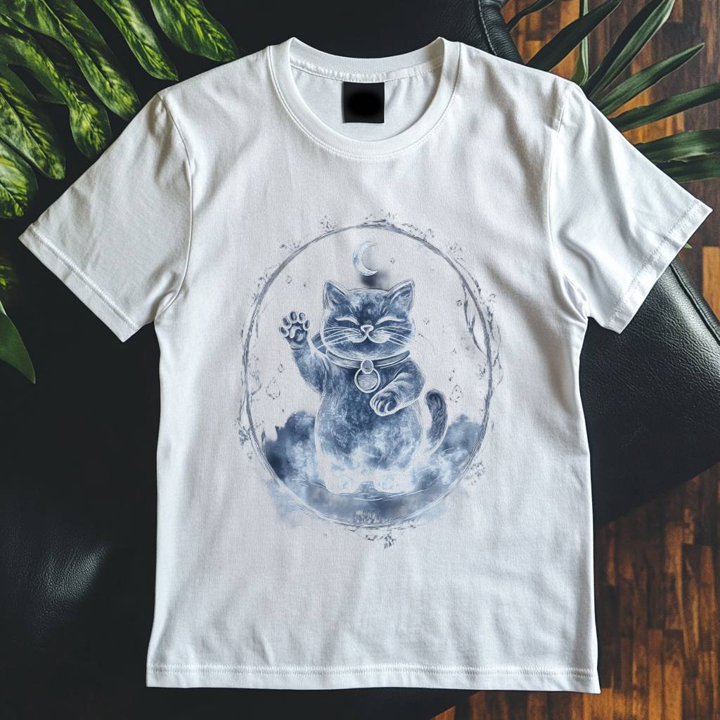 Dámské tričko - Maneki Neko ze štěstí měsíce | ILUS.cz | Barevný svět na plátnech | Trička, obrazy a plakáty