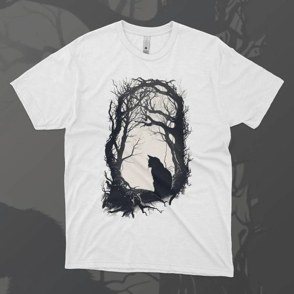 Představujeme vám tričko s názvem Půlnoční kočka, které zachycuje elegantní černou kočku sedící uprostřed temného lesa. Tato kočka, s očima zářícíma do hluboké noci, bedlivě sleduje tajemný les plný stínů a šeptajících stromů. Představte si, jak Půlnoční kočka prochází mezi stíny, zkoumá neviditelné cesty a odhaluje záhady noční přírody. Toto triko je ideální pro všechny, kteří cítí spojení s tajemnem a nočním klidem. Přidejte do svého šatníku tento mystický kousek a nechte se unést kouzlem půlnoci s touto fascinující kočičí průvodkyní.