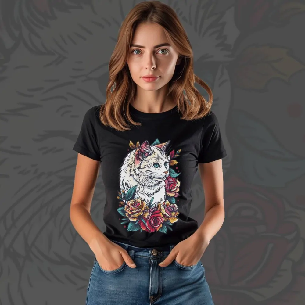 Dámské tričko - Petal Cat | ILUS.cz | Barevný svět na plátnech | Trička, obrazy a plakáty