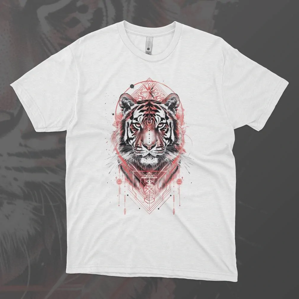 Fantasmální tygr je symbolem síly a tajemství. Toto tričko vypráví příběh tygra, který se objevuje v prastarých džunglích jen za svitu měsíce, kdy se ztrácí hranice mezi realitou a snem. Jeho pruhy září jako magické runy a jeho oči prozrazují moudrost získanou za nesčetné generace. Tygrova přítomnost je cítit všude kolem, i když ho málokdo spatří. Když si obléknete toto tričko, budete cítit sílu a mystickou energii fantasmálního tygra. Geometrické tvary na tričku zdůrazňují jeho snovou auru a moc. Tričko je nejen stylové, ale také přináší ducha divočiny a mystiky fantasmálního tygra. Ukažte světu svou odvahu a spojení s tajemným světem s tímto jedinečným trikem!