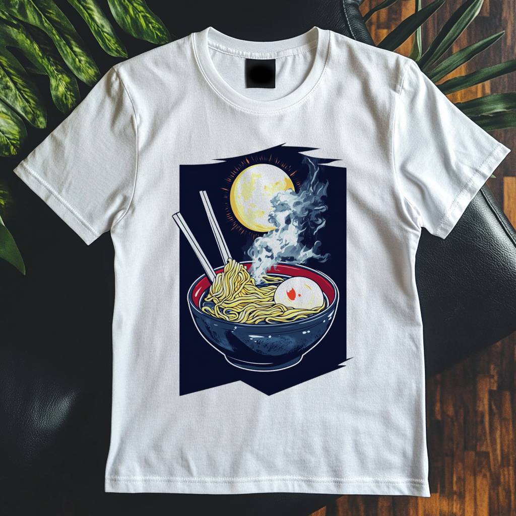 Pod zimním měsícem se miska ramen zahřívá v chladné noci 🌙.Pára stoupá vzhůru a vytváří kontrast mezi teplem a zimou.Atmosféra klidu a chuti tvoří jedinečné anime tričko.Japonská kultura jídla se zde odráží v kvalitním potisku a detailním zpracování.Oblékni japonské tričko, které dodá tvému streetwe... celý popis