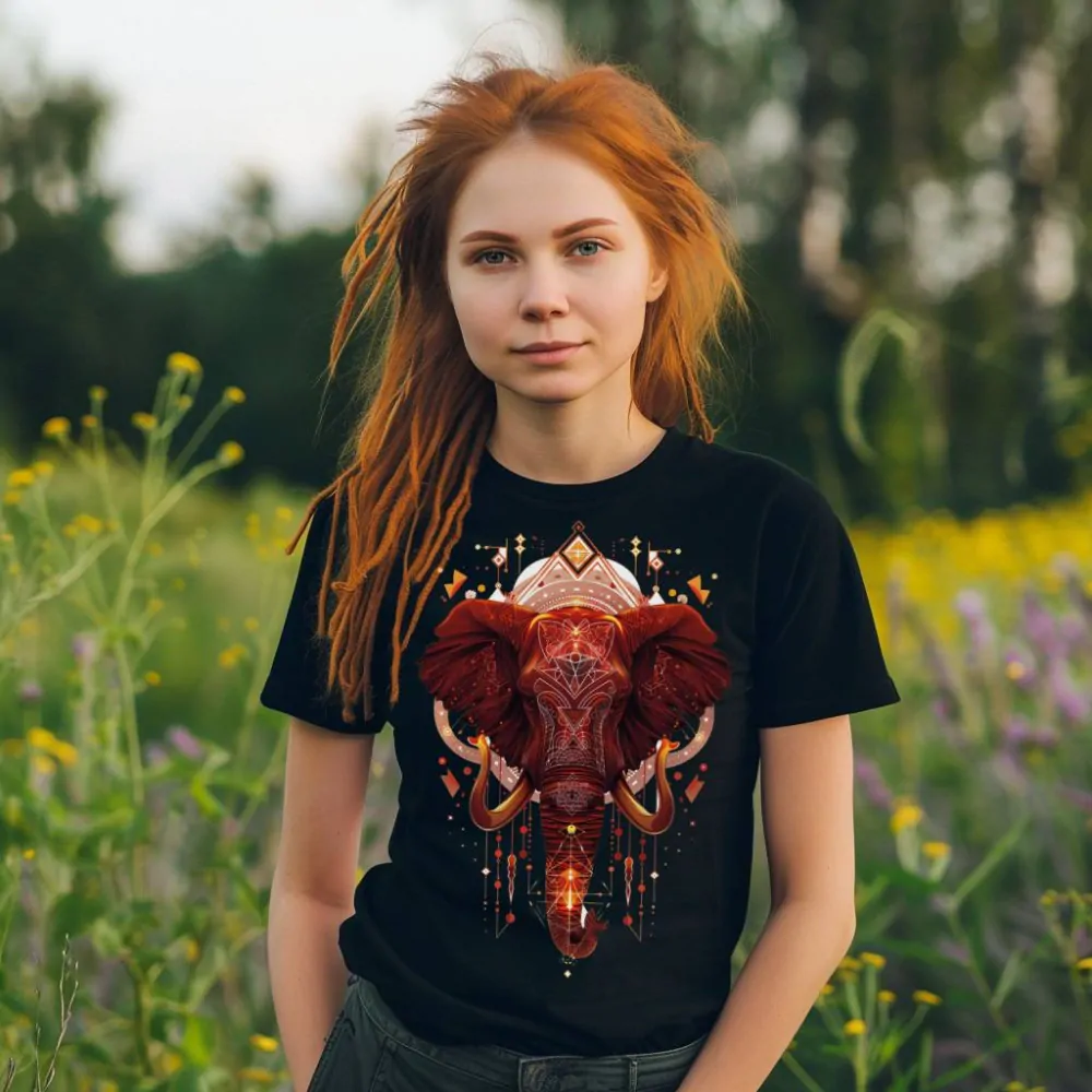 Posvátný slon je symbolem moudrosti a síly. Toto tričko vypráví příběh slona, který byl ochráncem starodávného chrámu v srdci džungle. Tento majestátní tvor vedl poutníky k duchovnímu osvícení a chránil je před nebezpečím. Když si obléknete toto triko, pocítíte jeho klidnou sílu a duchovní moudrost. Geometrické tvary na tričku zdůrazňují velikost a vznešenost slona. Tričko je nejen stylové, ale také přináší ducha ochrany a hluboké moudrosti posvátného slona.