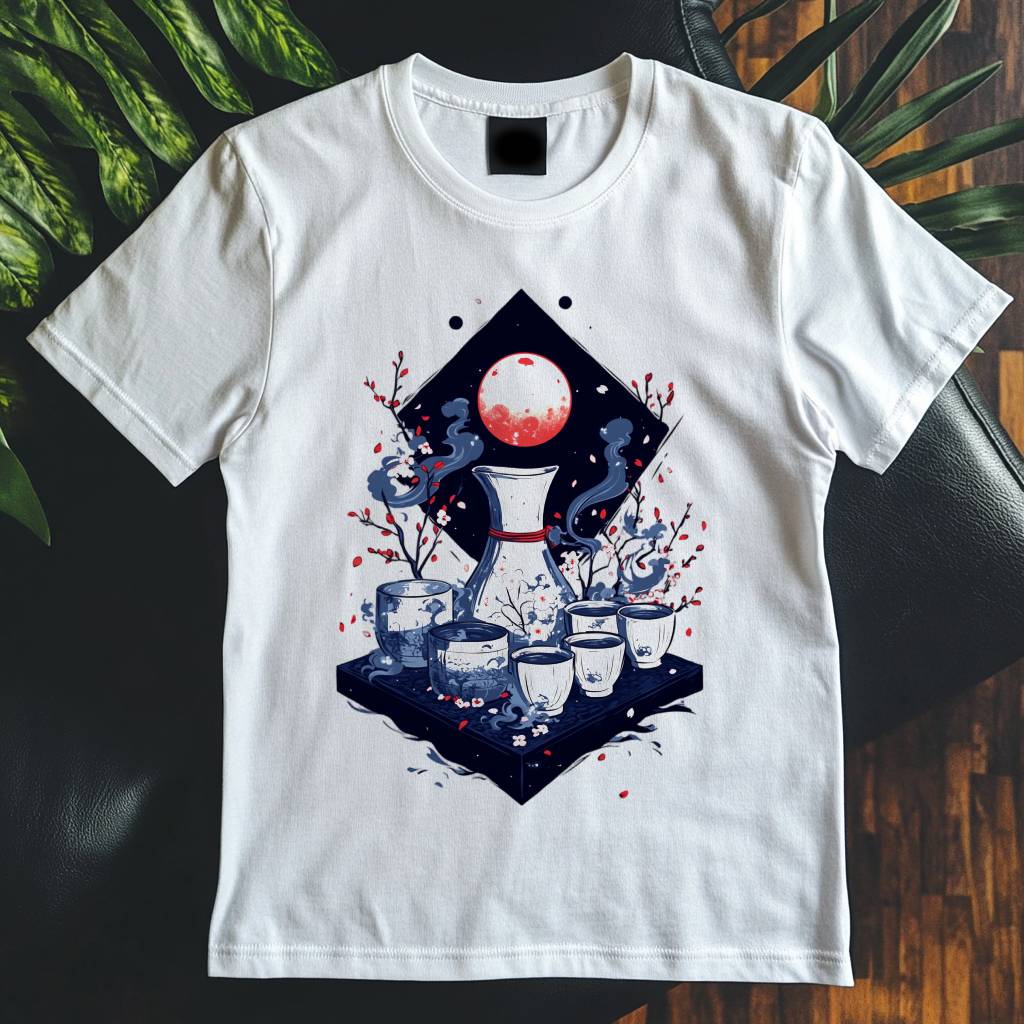Měsíční světlo dopadá na sklenku sake v tichém okamžiku 🌙.Jemný lesk tekutiny vytváří klidnou a intimní atmosféru.Minimalistický motiv působí jako elegantní anime tričko.Japonská tradice pití sake se spojuje s kvalitním potiskem.Tohle japonské tričko přinese do tvého streetwear stylu klid a rovnováh... celý popis