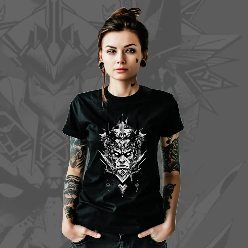 Spirit Shaman jako průvodce mezi světy, jehož hlas zní jako šepot větrů, neviditelně putuje mezi dimenzemi, propojujíc světlo a stín, aby našel rovnováhu v srdcích těch, kteří touží po poznání hlubin lidské duše a duchovního pochopení vesmíru. Šaman na tvém tričku.