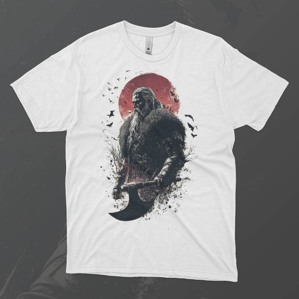 Temný vikingský válečník vyzařuje zlověstnou sílu a tajemnou energii bojovníka, zahaleného do stínů. Na tričku se tyčí postava vikinga s temnou helmou a ostrým mečem, jehož ostří odráží chlad noci. Kolem něj se rozprostírá mlha a runové symboly, které připomínají dávná kouzla a severské legendy. Tento motiv zosobňuje nejen neohroženost a divokost, ale i mystiku, kterou obklopují příběhy o vikingských válečnících. Tričko dokonale zachycuje sílu temnoty a ducha těch, kteří vládli jak mečem, tak tajemstvím severských bohů.
