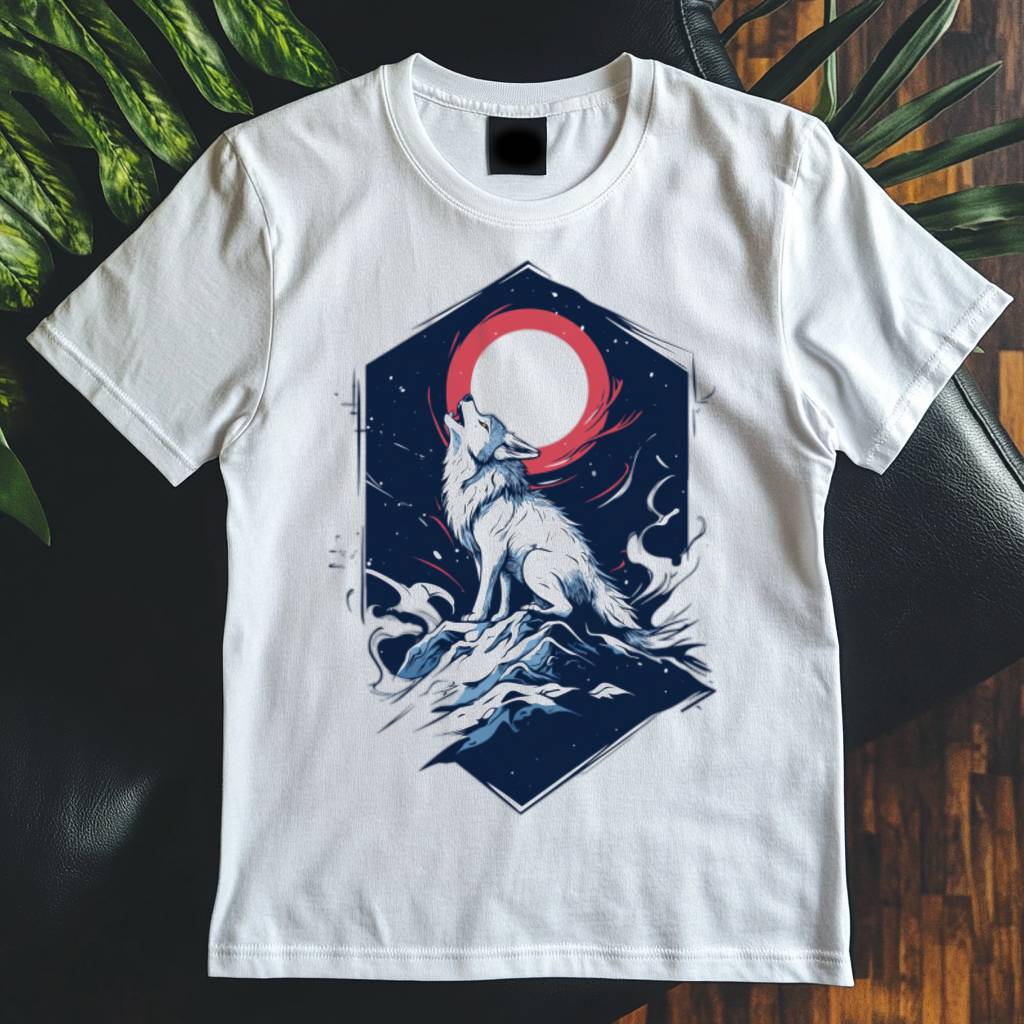 Vlk vyje na měsíc v hluboké noční samotě 🌕.Jeho silueta kontrastuje s jasným světlem oblohy.Silná emoce vytváří výrazné anime tričko.Symbolika přírody a instinktu je podtržena kvalitním potiskem.Toto japonské tričko přinese do tvého streetwear stylu divokou energii 🐺. celý popis