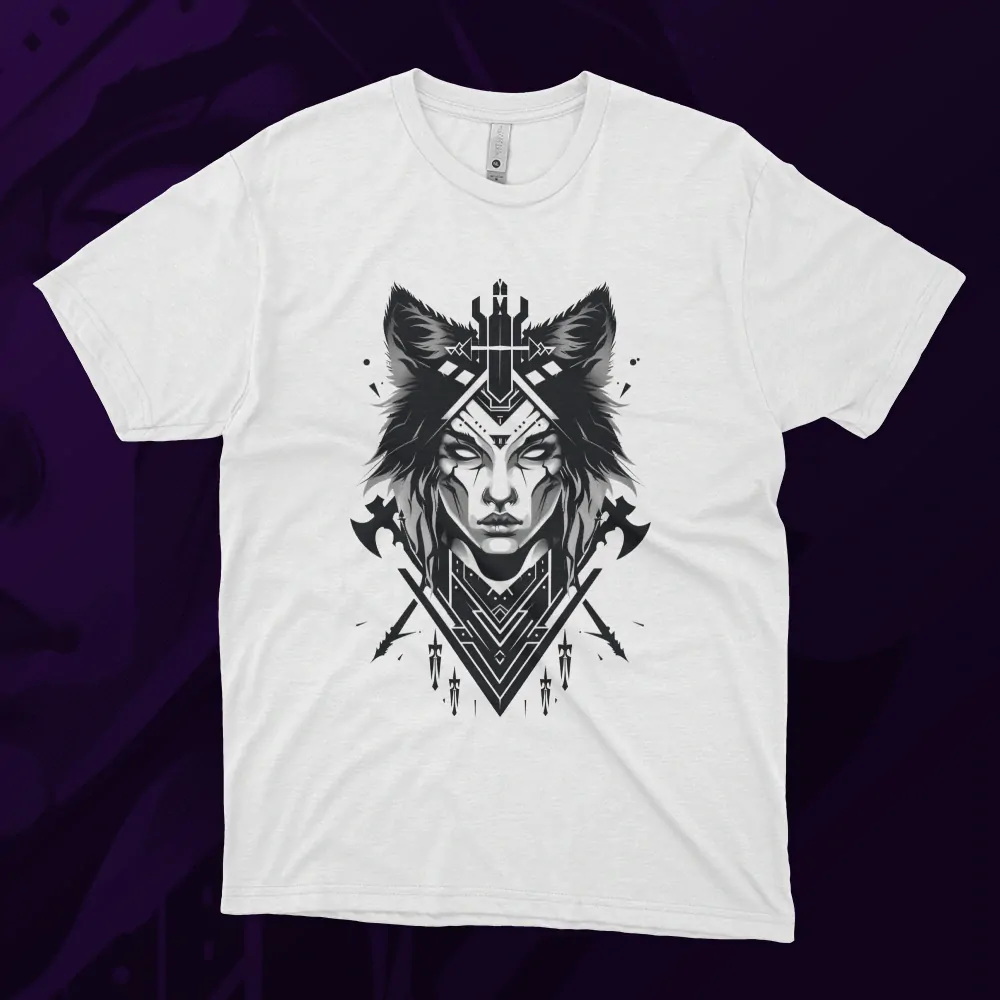 Ponořte se do světa starodávných rituálů a mystických vize s touto ženskou šamankou, jejíž síla spojuje světy viditelného i neviditelného. Toto tričko je pozvánkou do říše, kde se stýkají magie a moudrost, síla a intuitivní znalost. Oblečte se do této zbroje duchovního poznání a připravte se na cestu s Woman Shaman. Šaman na tvém tričku.