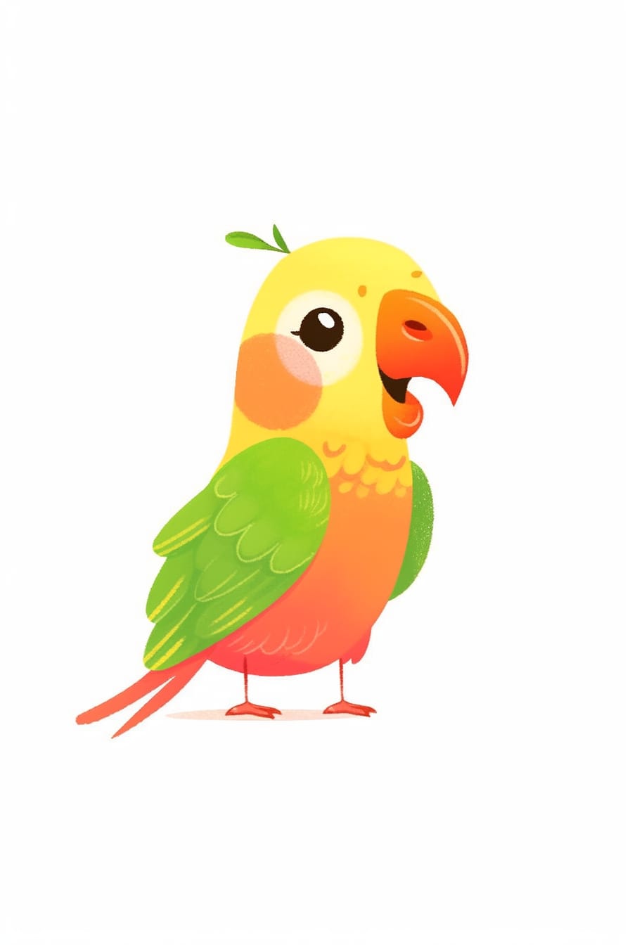 V této půvabné kreslené malbě září barevný papoušek na čistém bílém pozadí. Jeho pestrobarevné peří a živý výraz nás vtahují do světa přírodních krás, kdy se papoušek stává symbolem radosti a krásy.