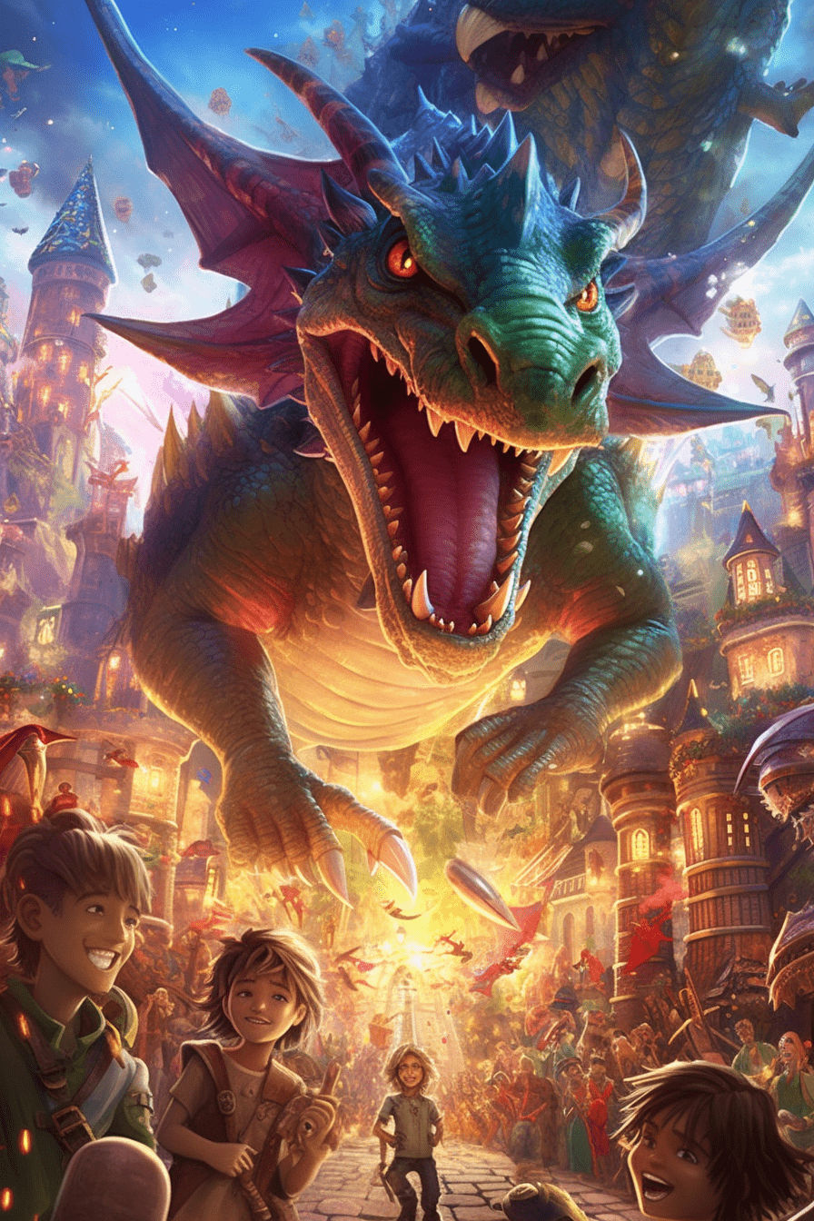 "Drak ve světě fantazie" je fascinující obraz plný kouzel a dobrodružství. Na obraze se nachází pohádkové město, nad kterým se vznáší ohromující drak. Jeho přítomnost vyvolává smích a radost mezi obyvateli města. Obraz je vytvořen ve fantasy stylu a je určen především pro děti a mládež.