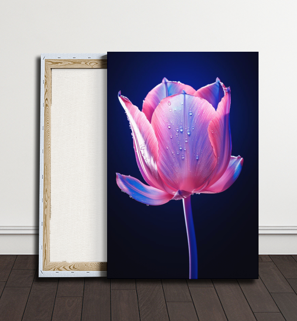 V tomto kouzelném obraze vyniká jediný fialový květ, zářící jako záblesk na modrém plátně. Modrá barva přináší do scény atmosféru klidu a tajemství, zatímco fialový květ dodává nádech magie a sílu do celé kompozice.