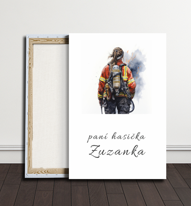 Oslavte své osobní úspěchy nebo milníky s tímto jedinečným obrazem, který vám umožní přidat vlastní text, jméno nebo číslo, a udělat tak každý kus osobním a výjimečným. Obraz zobrazuje hasičku a je doplněn o rukopisný text “paní hasička Zuzanka”, který může být nahrazen vaším vlastním textem.