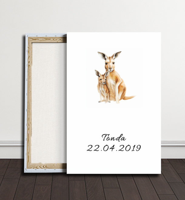 Osobní dotek umění! Objednejte si tento roztomilý obraz klokana a přidejte vlastní text, jméno nebo datum, aby byl jedinečným a osobním dárkem nebo dekorací.