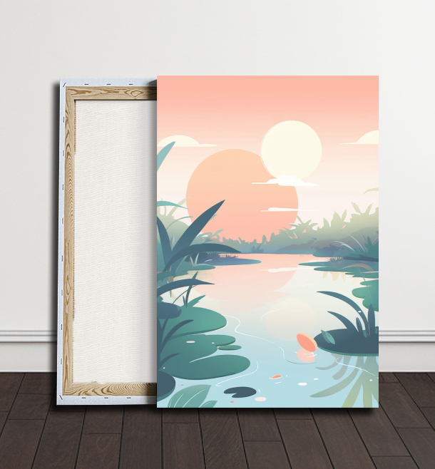 Západ slunce přináší do této idylické krajiny ohromující zlaté odstíny, které se odrážejí na hladině rybníka, zatímco velký strom vystupuje jako nádherný strážce této klidné scenérie.