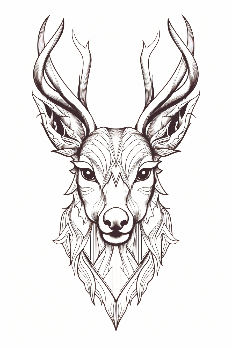 Obraz prezentuje jelení motivy v linorytu, který kombinuje precizní obrysy a přenáší na diváka sílu a krásu jelena.