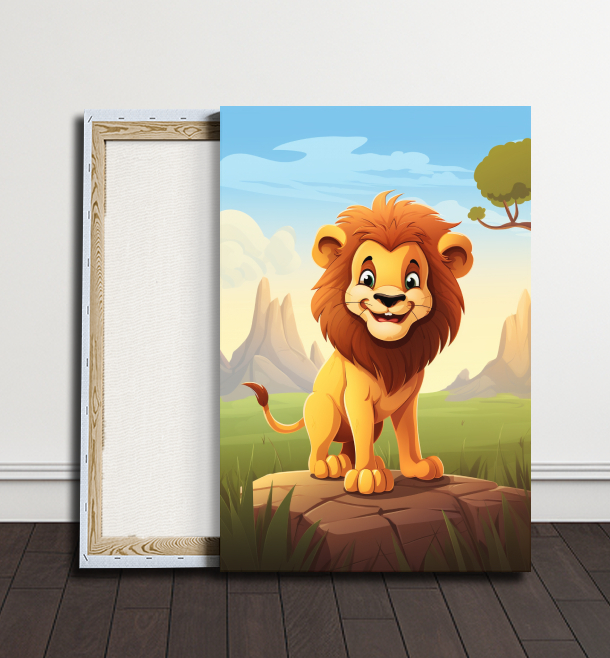 Na obraze je zachycen dětský lev, který se radostně vznáší nad krajinou. Zlatavá tráva se chvěje v lehkém větru, zatímco vzdálené vrcholky hor se ztrácejí v modravé dálce. Dětský lev, jehož jemný srst jiskří slunečními paprsky, vypadá hravě a plný života. Jeho oči září nadšením a odvahou, zobrazujícími sílu a bezmeznou fantazii dětství. Leví tlapky se dotýkají země s lehkostí, zanechávajíce za sebou jemné otisky. Celková atmosféra obrazu je naplněna radostí a nadějí, připomínající nám, jak důležité je zachovat si svůj vnitřní dětský svět a neztratit spojení s přírodou.