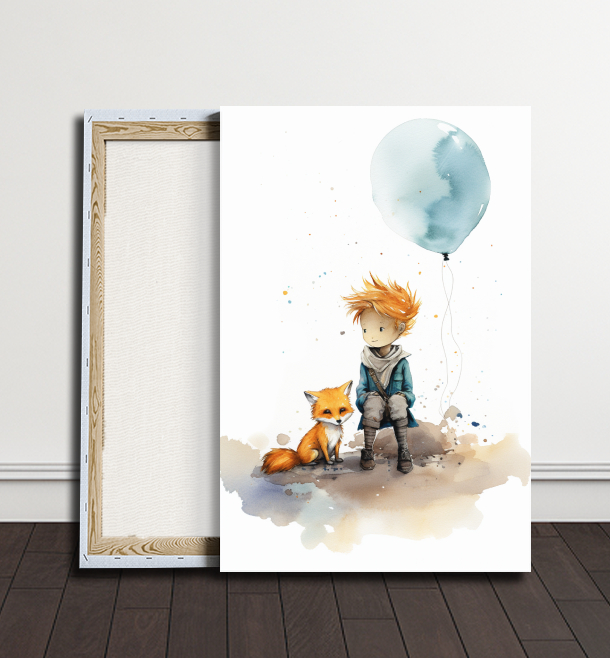 Tento kouzelný obraz zachycuje intimní moment mezi Malým Princem a jeho věrnou liškou. S něhou a hravostí, které vyzařují z jejich spojených pohledů, je tento kousek ideální pro přidání tepla a fantazie do jakéhokoliv prostoru.