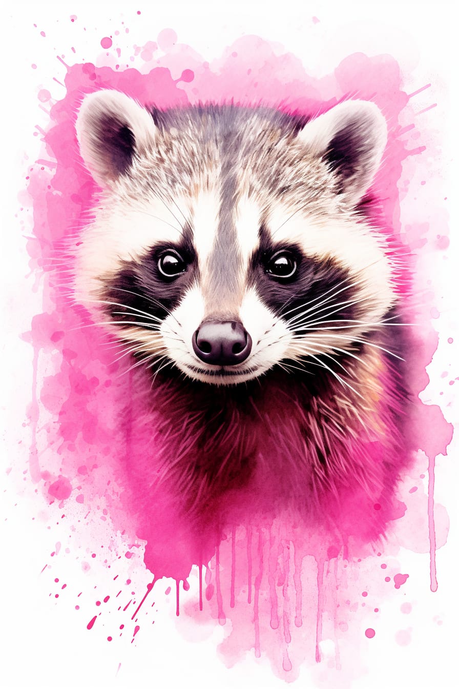 V této okouzlující kresbě se nachází hlava mývala na něžném růžovém pozadí. Obraz vytváří atmosféru snového světa, kdy mýval se může ztratit ve svém barevném růžovém snu plném jemnosti a pohody.
