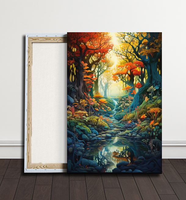 Tato lesní cesta se ponořuje do kouzelného podzimního prostředí, kde se barevné listí třpytí na zemi a stromy se proměňují v ohnivé obrazy. Je to cesta plná teplých odstínů a melancholie.