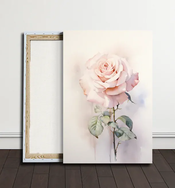 Jemná růžová růže rozkvétá na čistém bílém pozadí jako symfonie něhy a krásy. Její něžné okvětní lístky a jemné odstíny tvoří harmonii a zahalují diváka do pocitu klidu a radosti. Obraz přináší pocit romantiky a nevinnosti, která okouzluje srdce a mysl.
