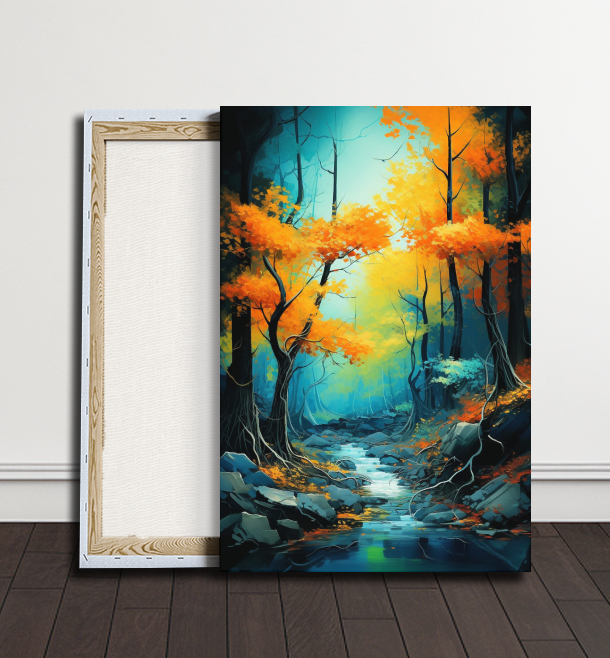 V temnotě lesa se vytrácí světlo dne, kdy podzimní stromy svírají cestu v objetí svých vyschlých větví. Lesní pestré barvy vytvářejí závoj tajemství, který láká k objevování skrytých kouzel pod každým krokem.