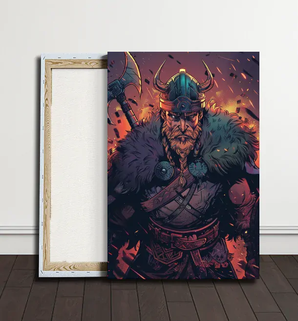 Vikingové u ohně sedí kolem plápolajícího ohně, jehož světlo rozjasňuje jejich tváře a zahřívá jejich těla pod temnou oblohou. S meči u nohou a pohárem moku v ruce sdílejí příběhy o slavných dobyvatelských činech a výpravách do vzdálených zemí, posilujíce si pouto bratrství a odhodlání k dalším dobrodružstvím. V této chvíli spojení s ohněm cítí sílu svých předků a vášeň pro dobytí a slávu.