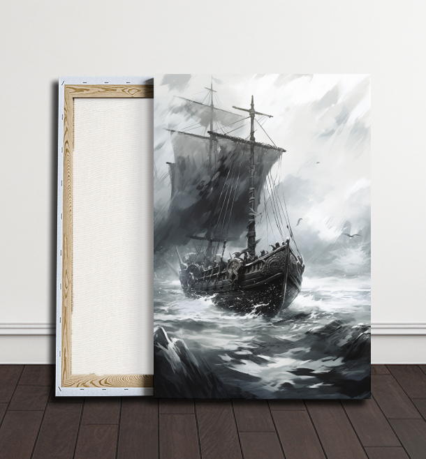 Velká vikingská loď, která pluje na mořském obzoru s velkou plachtou, se stává legendou mezi mořeplavci. Její příběhy jsou vyprávěny generacím, zanechávajíc za sebou stopy statečnosti a dobrodružství. Obraz vyvolává pocit respektu a fascinace nad bohatou historií vikingských lodí a jejich námořníků.
