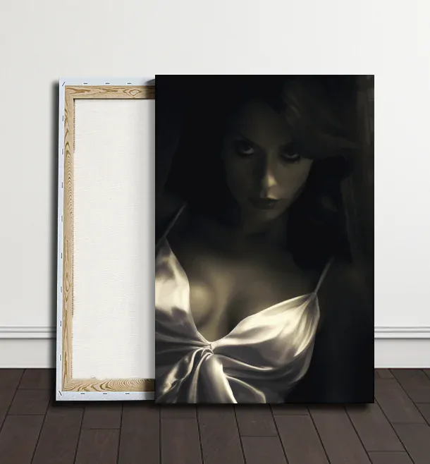 Pod hrou stínů a světla spočívá tajemství, zahalené ve větru bílé halenky. Žena ve stínu, jejíž tvář zůstává skryta, vytváří záhadnou a zároveň krásnou atmosféru. Velký výstřih vytváří optickou iluzi, jako by se z jemného závoje vytrácely kontury reality. Obraz "Závoj tajemství" nás zve k zamyšlení nad skrytými emocemi a nevyslovenými myšlenkami, které nás spojují s vnitřním světem této enigmatické postavy.