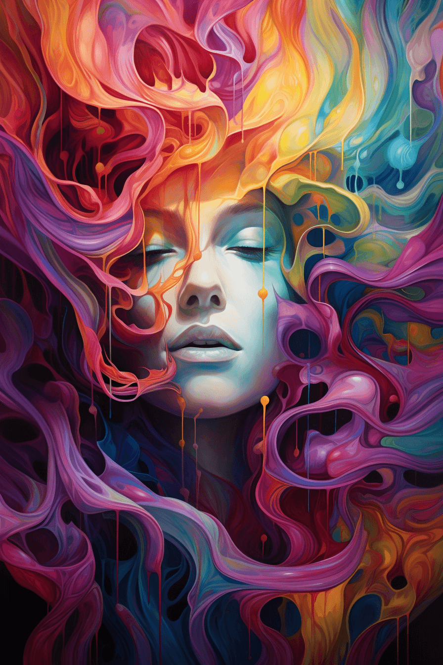Tento abstraktní obraz vyjadřuje sílu a odvahu ženského ducha prostřednictvím dynamických tvarů a živých barev, které se prolínají a vytvářejí dojem odhodlání a nezdolnosti ženského světa.