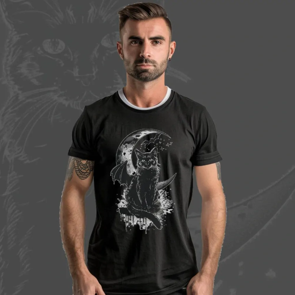 Představujeme vám tričko s názvem Netopýří kočka, které zachycuje tajemnou černou kočku ve tmě s netopýřími křídly. Tato fascinující kočka se vynořuje z temnoty, její oči září jako dva malé měsíčky a její křídla se rozprostírají do noci. Představte si, jak Netopýří kočka tiše létá nocí, prozkoumává tajemná zákoutí a hlídá nadpřirozená tajemství, která se skrývají ve tmě. Toto triko je ideální pro všechny milovníky koček a temné mystiky, kteří chtějí do svého šatníku přidat kousek plný tajemna a kouzla. Přidejte si tento jedinečný kousek do svého šatníku a nechte se unést magií noci s touto okouzlující kočičí bytostí.