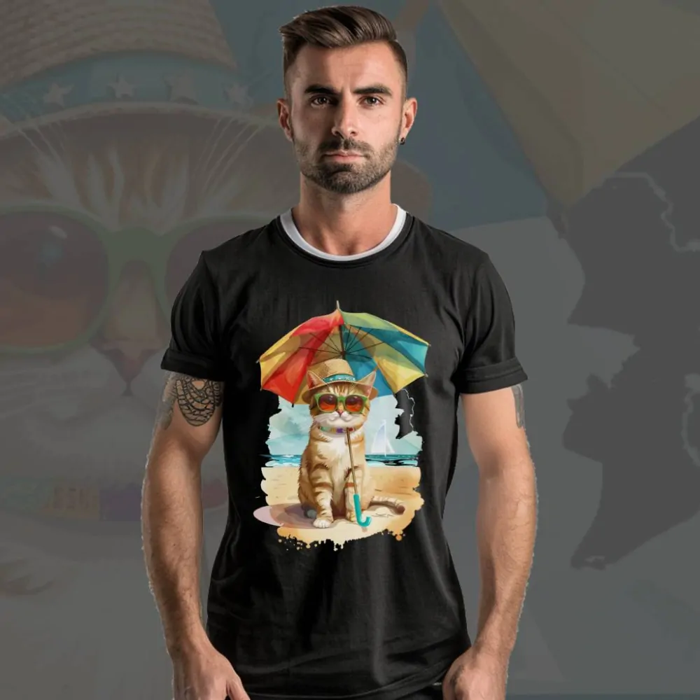 Představujeme vám tričko s názvem Plážová kočka, které zachycuje kočku relaxující na pláži. Tato kočka si užívá slunečné dny, leží na písku pod palmou a pozoruje vlny oceánu. Představte si, jak Plážová kočka tráví své dny na sluníčku, loví kraby a sleduje racky. Toto triko je ideální pro všechny milovníky koček, kteří rádi tráví čas u moře. Přidejte do svého šatníku tento letní kousek a přeneste se na písečné pláže s touto uvolněnou kočičí kamarádkou.