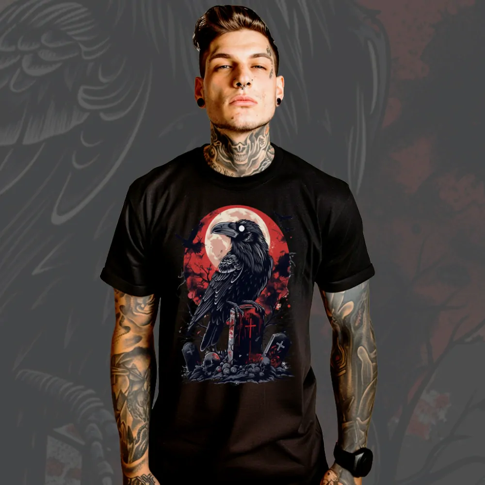 Cemetery Raven – havran na tričku, temný motiv havrana, triko s hororovým designem