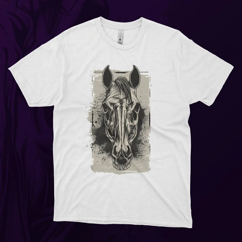 Zamilujte se do této symfonie hrůzy a mystiky s tričkem Dark Horse Skeleton. Představte si osedlaného koně ze záhrobí, jehož kostra pulzuje energií z temných rohů podsvětí a jehož oči svítí jako ohnivé uhlíky v nočním šeru. Temný kůň na vašem tričku. Výrazná lebka koně vytváří temný a mystický motiv inspirovaný symbolikou smrt a divokou silou přírody. Tento design spojuje motiv kůň, lebka a temná atmosféra, která připomíná legendy o duchu koně a pomíjivosti života.