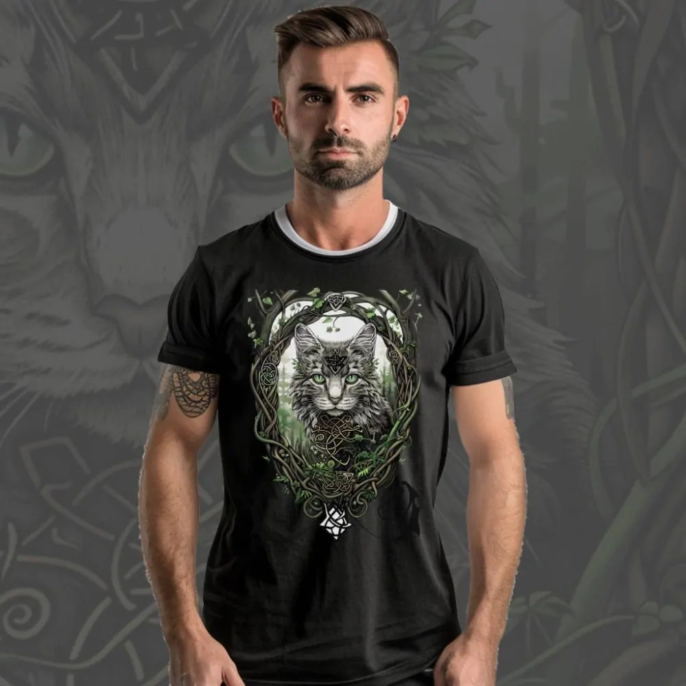 Pánské tričko - Druid Cat | ILUS.cz | Barevný svět na plátnech | Trička, obrazy a plakáty