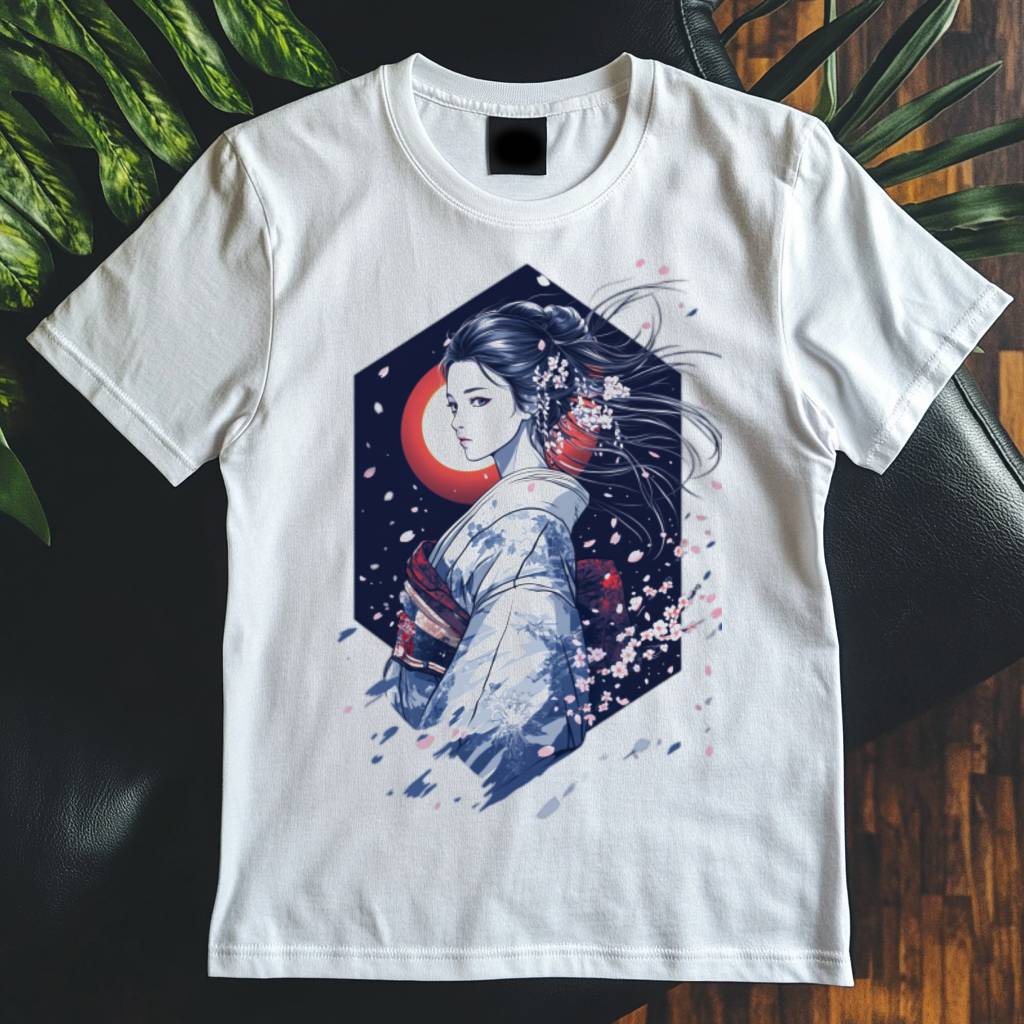 Za jemným hedvábným závojem se skrývá tajemná geisha, která sleduje svět tichým pohledem 🎭. Její silueta splývá s látkou a vytváří iluzi pohybu a elegance. Detailní vzory a jemné barvy evokují tradiční japonské umění. Motiv propojuje kulturu geish s moderním zpracováním a kvalitním potiskem. Tohle japonské tričko jako tričko s japonským motivem povyšuje streetwear i anime tričko na estetický zážitek 🌸.