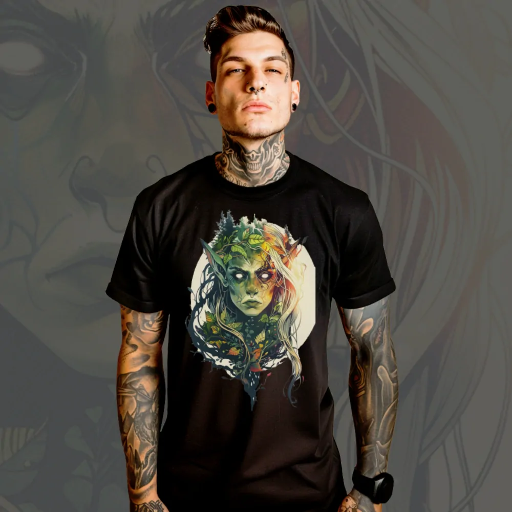 Ve stínu bujného lesa se pohybuje Green Female Elf, jejíž vlasy splývají jako zelené viněty a oči září jasněji než listí stromů. Toto tričko je pozvánkou do světa, kde se setkává krása přírody a síla elfí magie, kde Green Female Elf chrání své zelené území s elegancí a odhodláním. Oblečte se do této zbroje a připravte se na dobrodružství v lese, kde se skrývají nekonečné tajemství a přírodní kouzla.