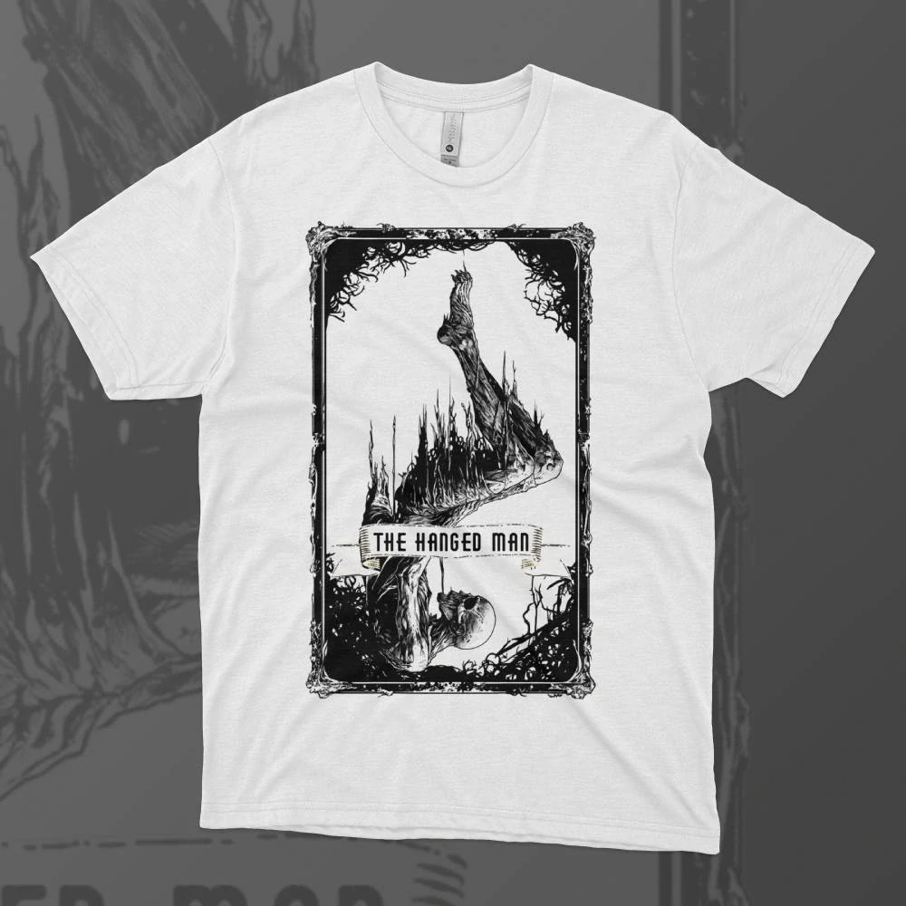 The Hanged Man – Viselec. Oběť, změna perspektivy, osvícení. Viselec z tarotu Velké arkány učí trpělivosti a přijetí nevyhnutelného. Tento design je pro ty, kdo se nebojí pohlédnout na svět jinýma očima a najít moudrost v nečekaných situacích. Přijmi tajemství Viselce a nech se vést cestou poznání. Temný motiv inspirovaný tarotem, kde lebka, postava oběšenec a symbolika osudu vytvářejí mystickou atmosféru mezi životem a smrt. Design připomíná tarotovou kartu oběšenec, která symbolizuje oběť, nový pohled na svět a přijetí nevyhnutelného.