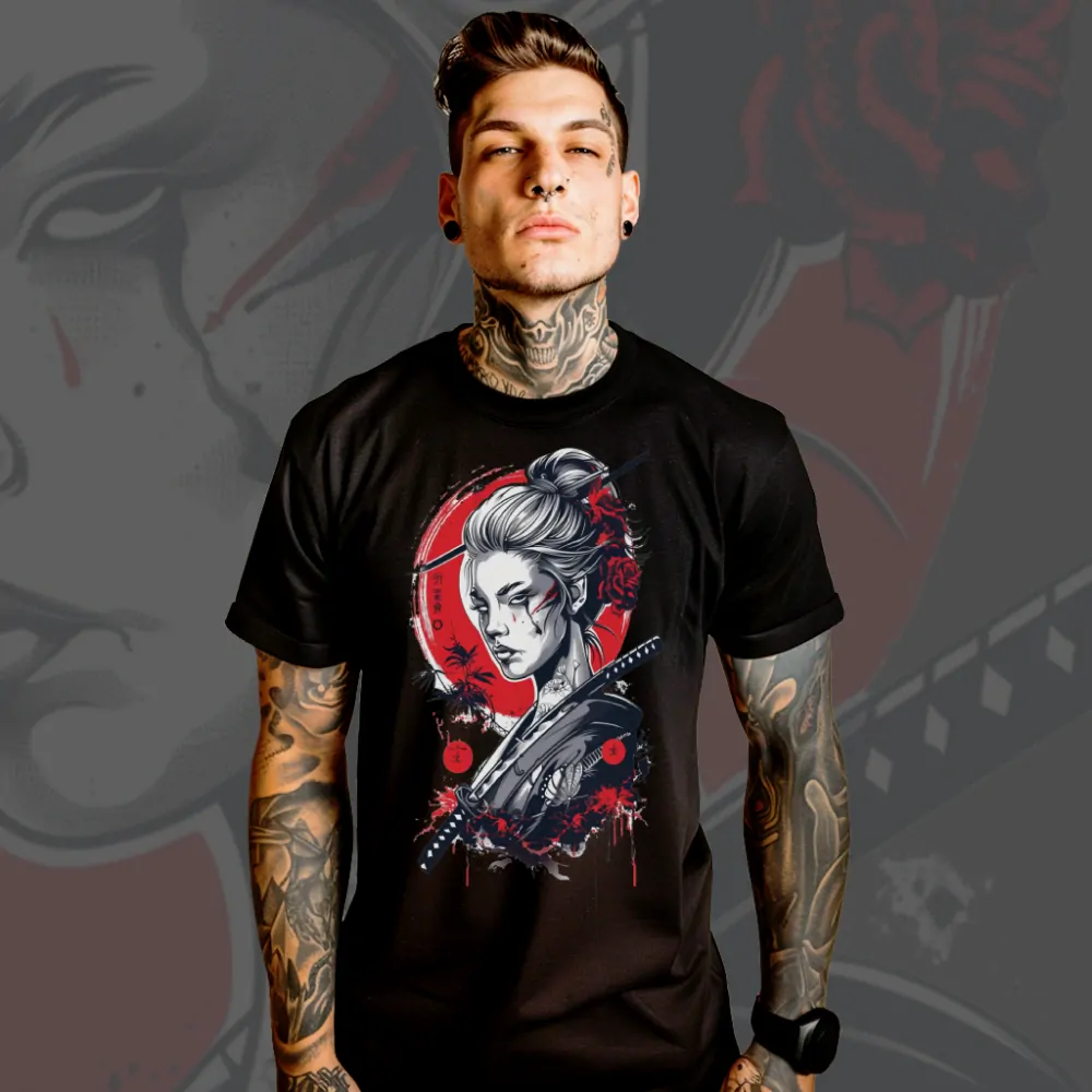 Pánské tričko - Japanese Samurai Girl | ILUS.cz | Barevný svět na plátnech | Trička, obrazy a plakáty