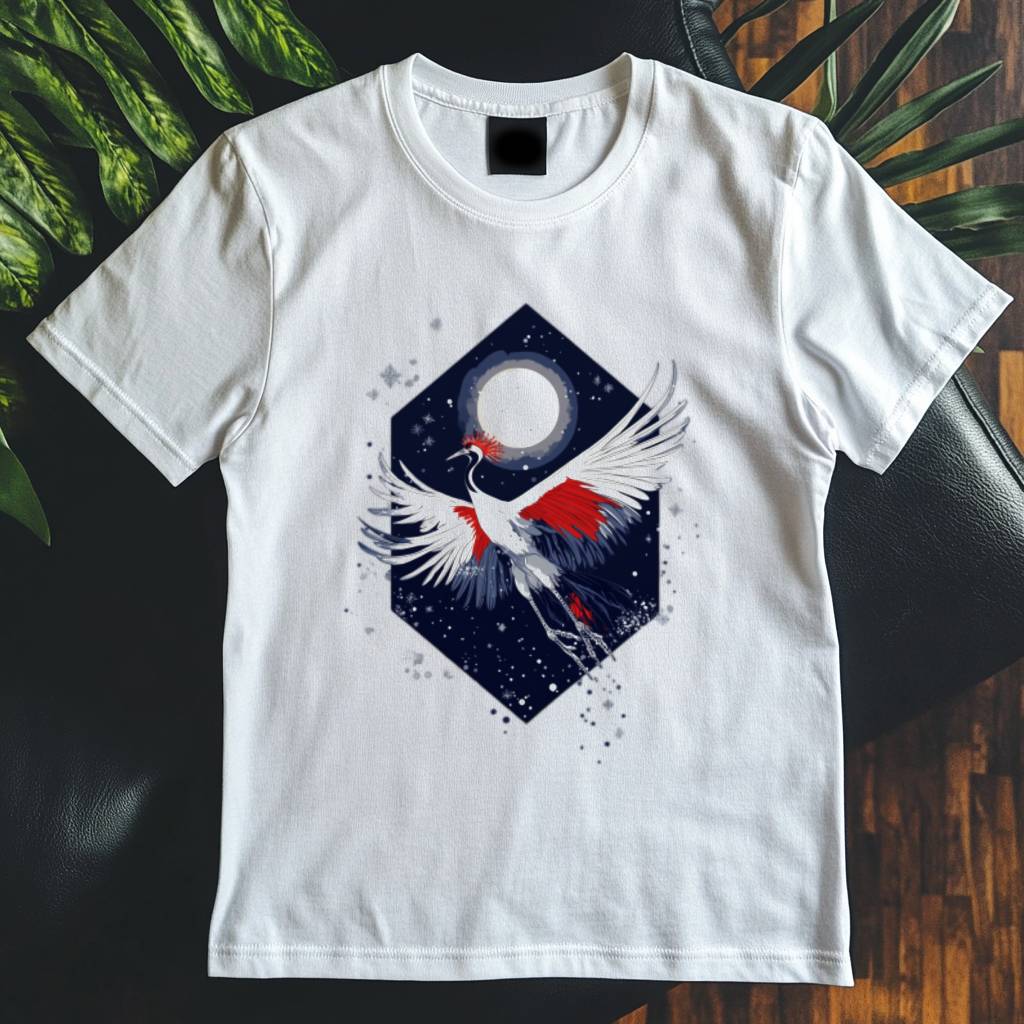 Japonská symbolika jeřába a pomíjivosti se propojuje s kvalitním potiskem, který drží každý detail.