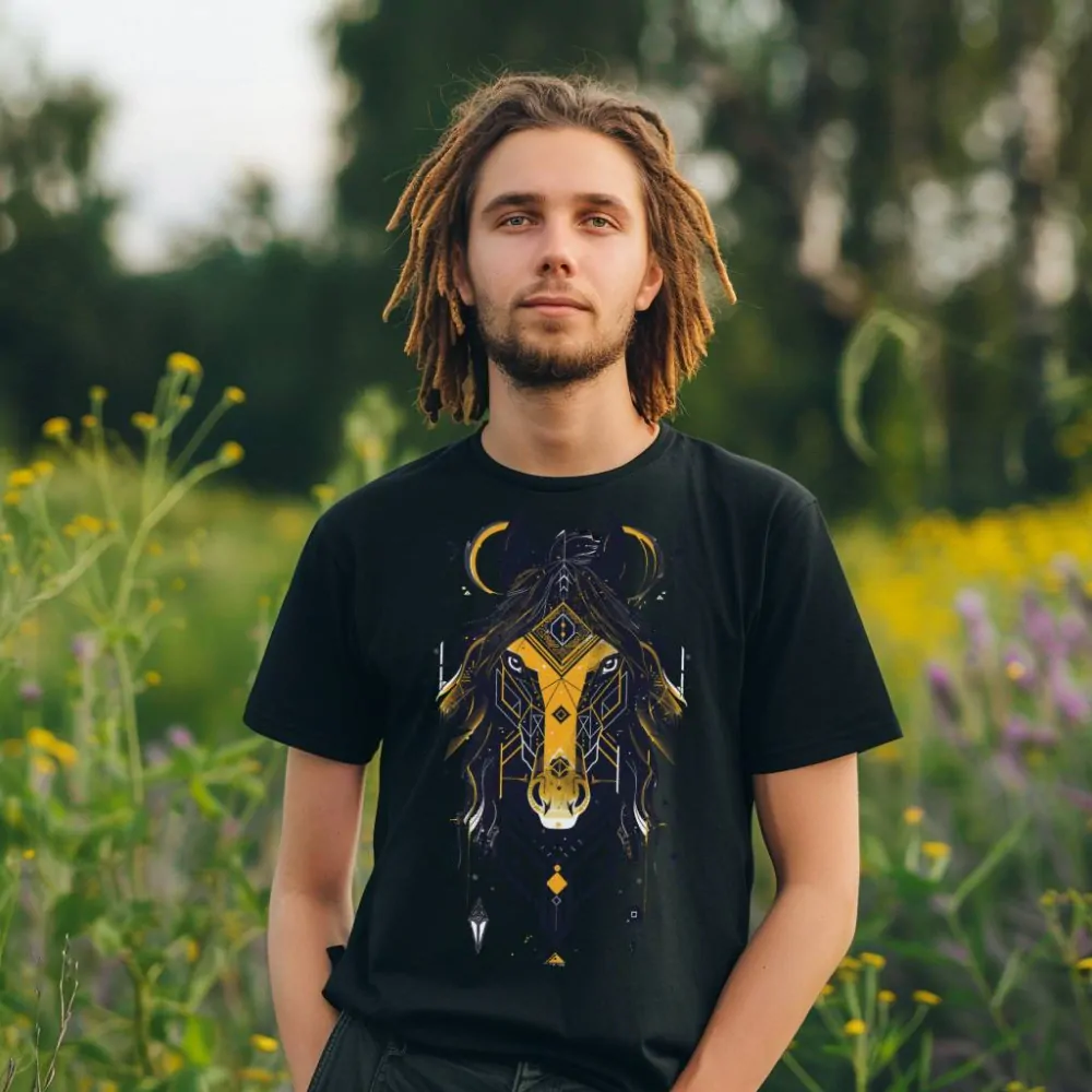 Měsíční kůň je symbolem klidu a mystiky. Toto tričko vypráví příběh koně, jenž je spojen s nočním nebem a jeho tajemstvími. Jeho kopyta tichounce tříští noční mlhu, a jeho hříva se třpytí jako stříbrný měsíc. Když si obléknete toto tričko, budete cítit klid a spojení s nočním nekonečnem. Geometrické tvary na tričku zdůrazňují eleganci a harmonii měsíčního koně. Tričko je nejen stylové, ale také přináší ducha klidu a mystické síly lunárního koně.