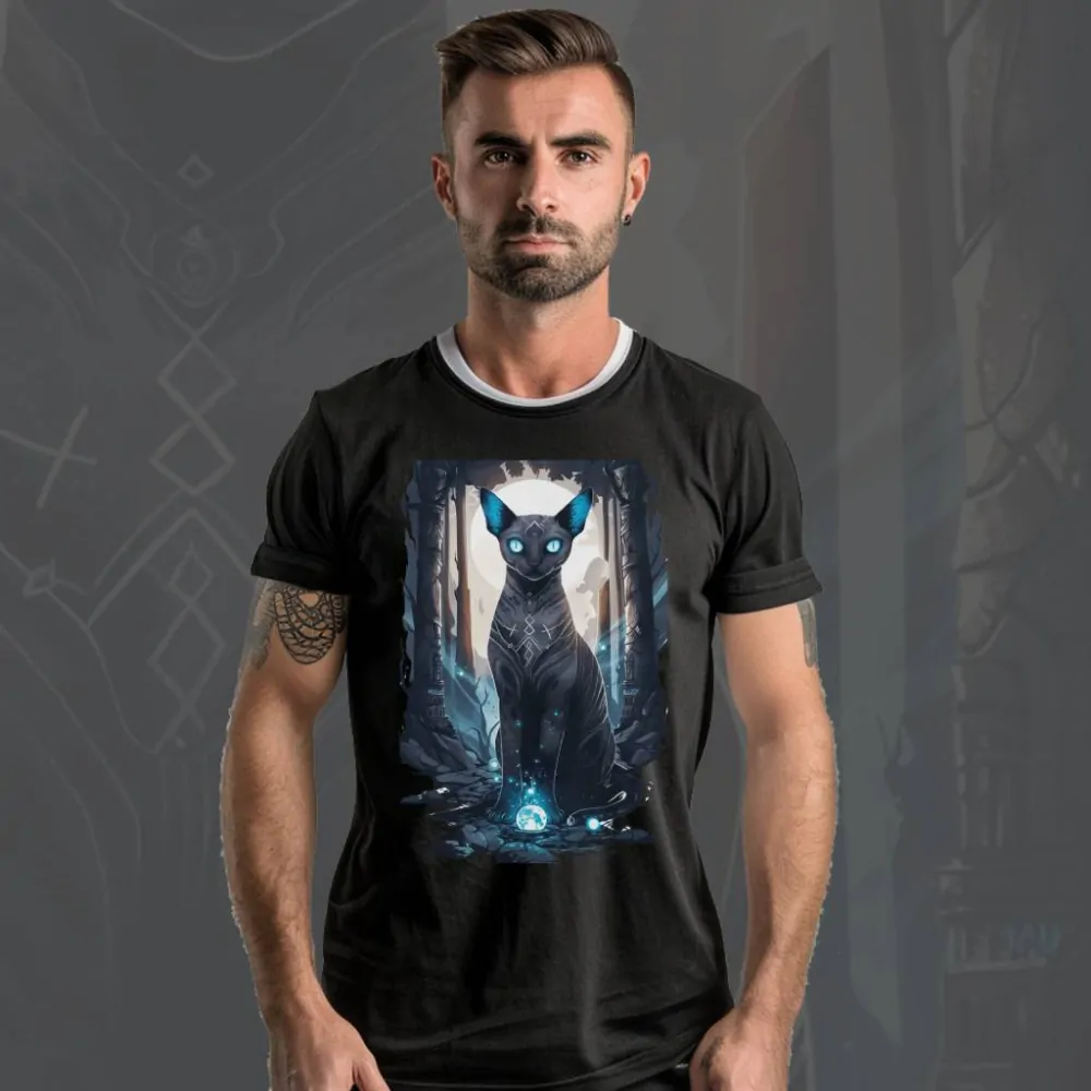 Pánské tričko - Moonlit Cat | ILUS.cz | Barevný svět na plátnech | Trička, obrazy a plakáty