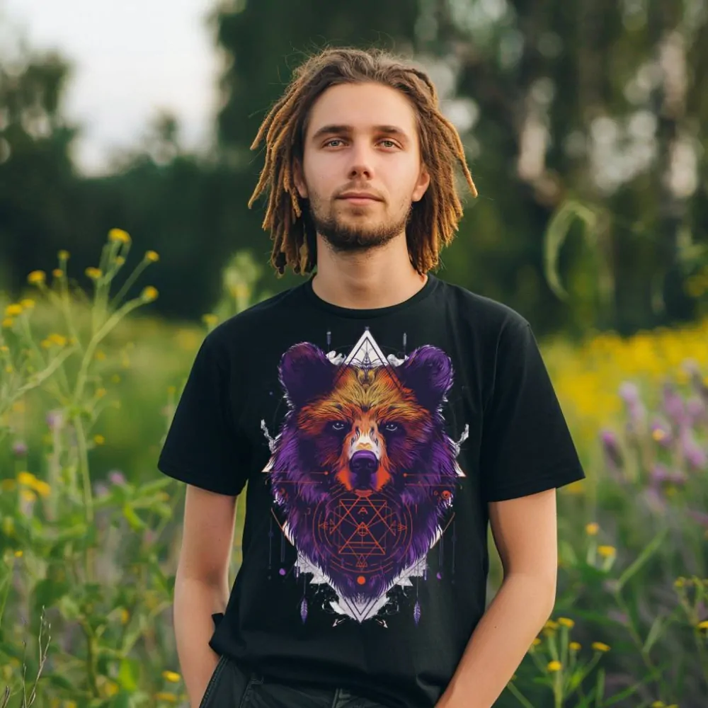 Mystický medvěd je ztělesněním síly a moudrosti. Toto tričko přináší příběh starodávného šamana, který se setkal s duchem medvěda v hloubi lesa. Medvěd mu předal tajemství přírody a ochranu před zlými silami. Nositel tohoto trika získává nejen styl, ale i duchovní spojení s touto mocnou bytostí. Tričko je navrženo s geometrickými tvary, které zdůrazňují majestátnost medvěda. Věřte v sílu medvěda a noste jeho symboliku s hrdostí.