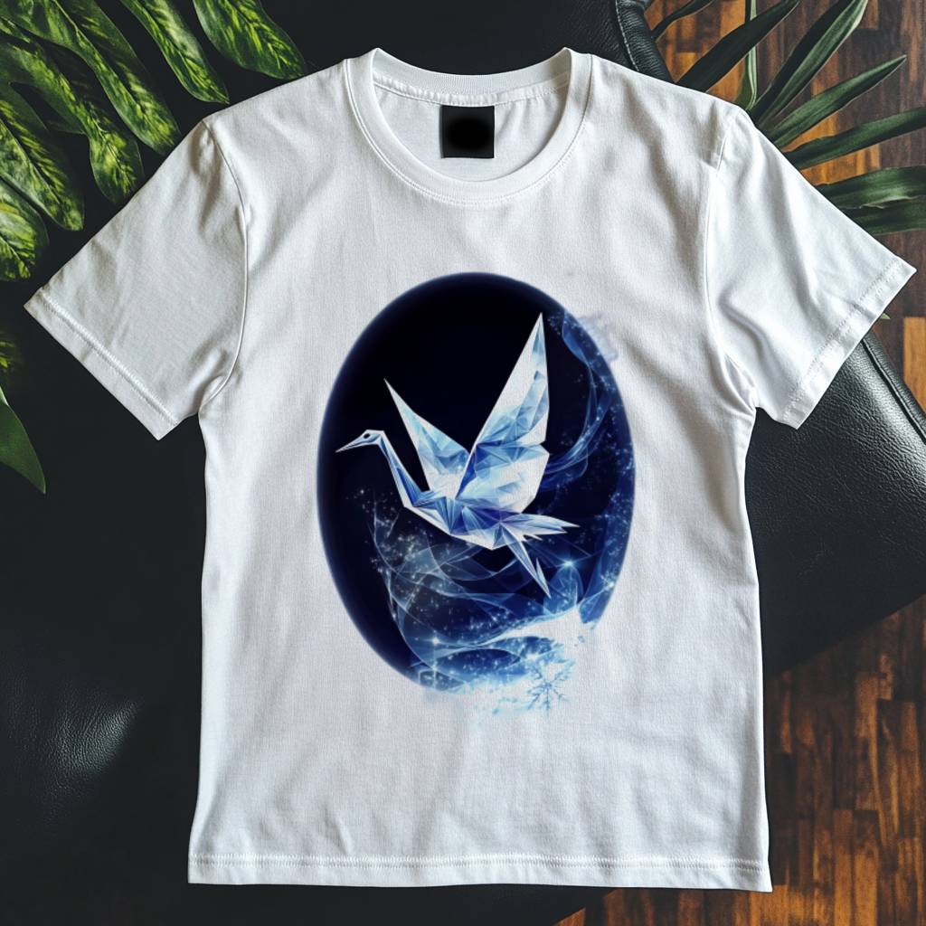 Pánské tričko - Origami jeřáb nad oblaky | ILUS.cz | Barevný svět na plátnech | Trička, obrazy a plakáty